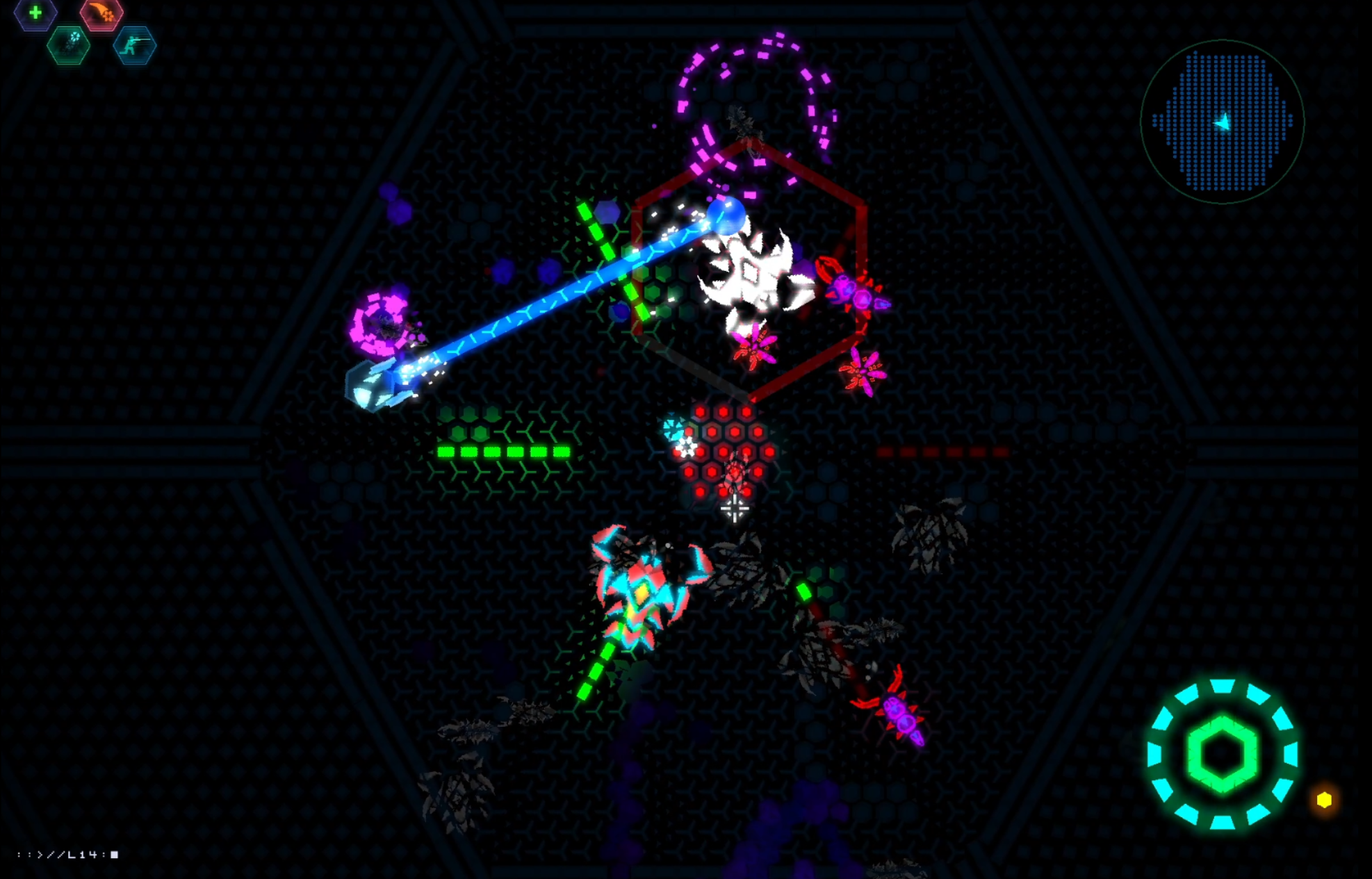 Hexical is a retro twin stick action rogue-lite with physics based combat. You, the unnamed program, are tasked with delivering components and defeating the 3 viral aspects. Can you free the Librarian and bring order back to the system?